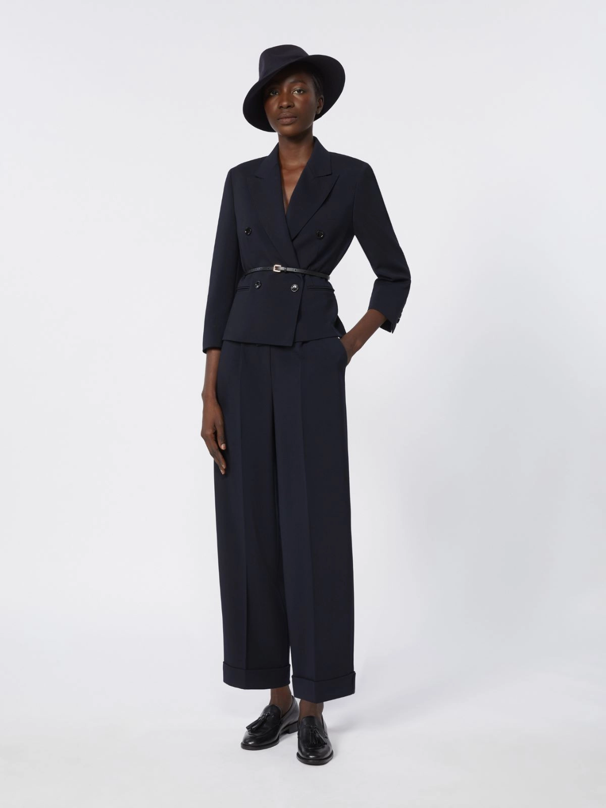 Fabric 98% virgin wool, 2% elastane; lining 65% acetate, 35% polyester.