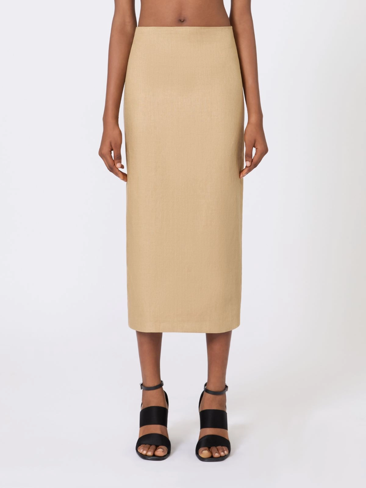 Midi skirt with a fitted silhouette, finished with a tailored pick stitch at the waist.