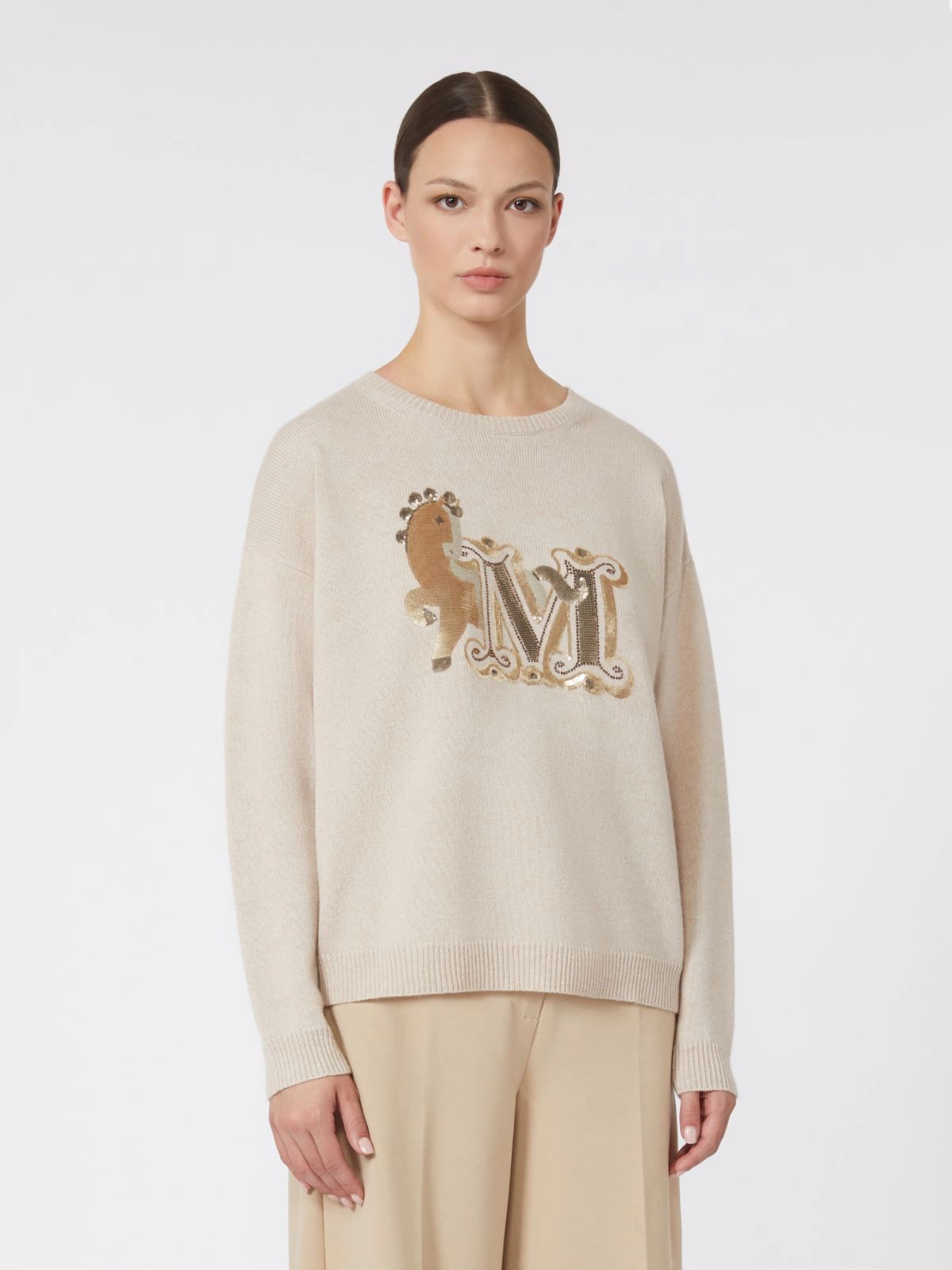 The front of this iconic Max Mara sweater is customised with sequin and rhinestone-embroidered M Monogram detail.