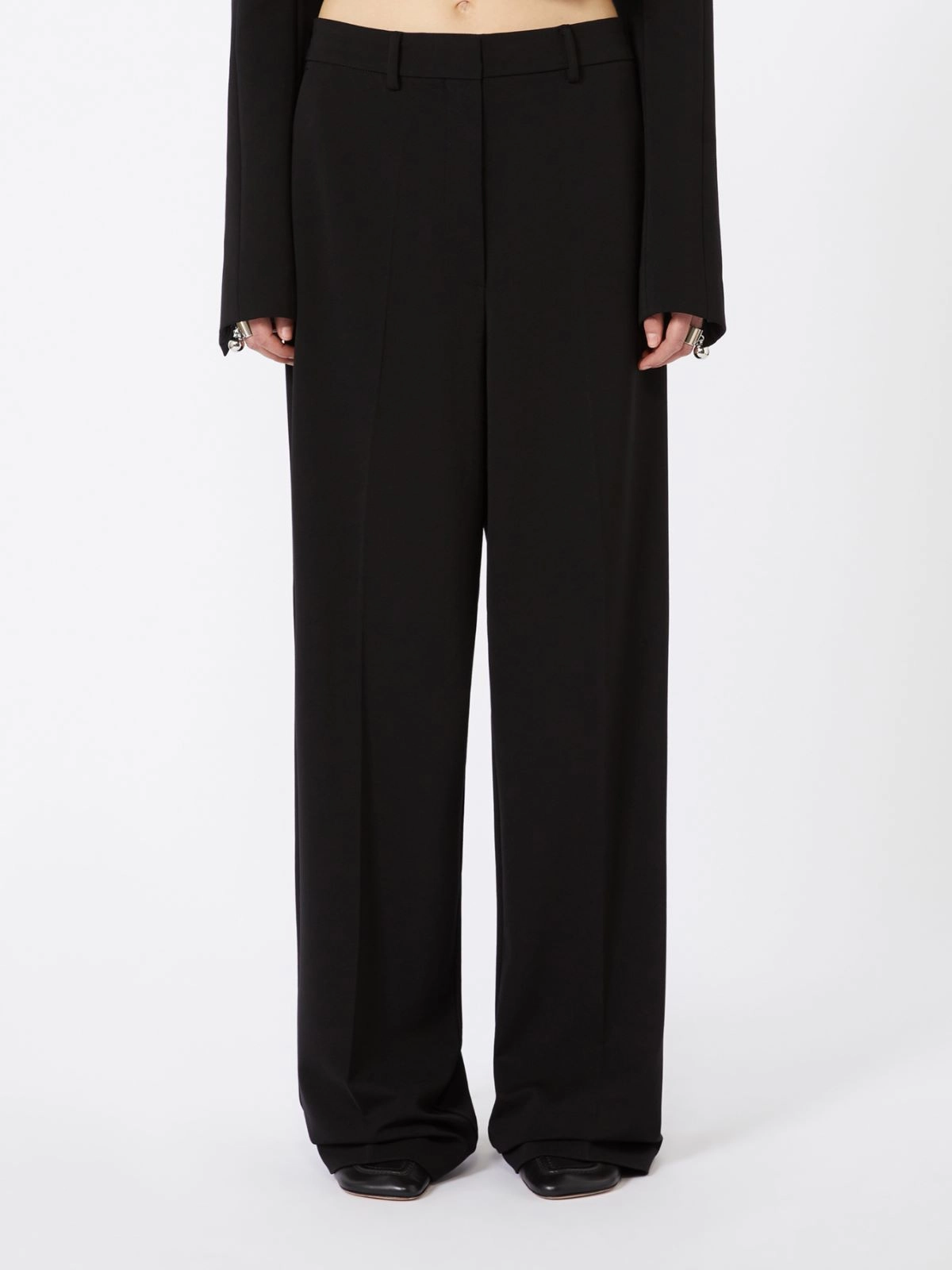 Compact jersey trousers, with a straight leg and menswear-inspired construction. With trouser crease for a defined silhouette.