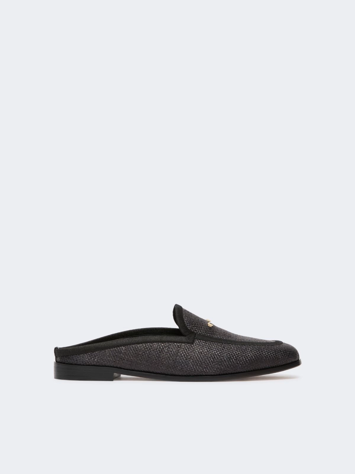 Mules with rounded toe, matching embroidered details and metallic M logo applied on the upper.