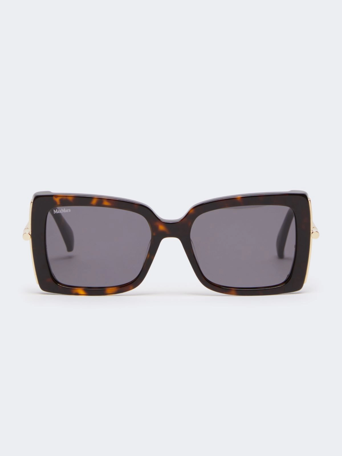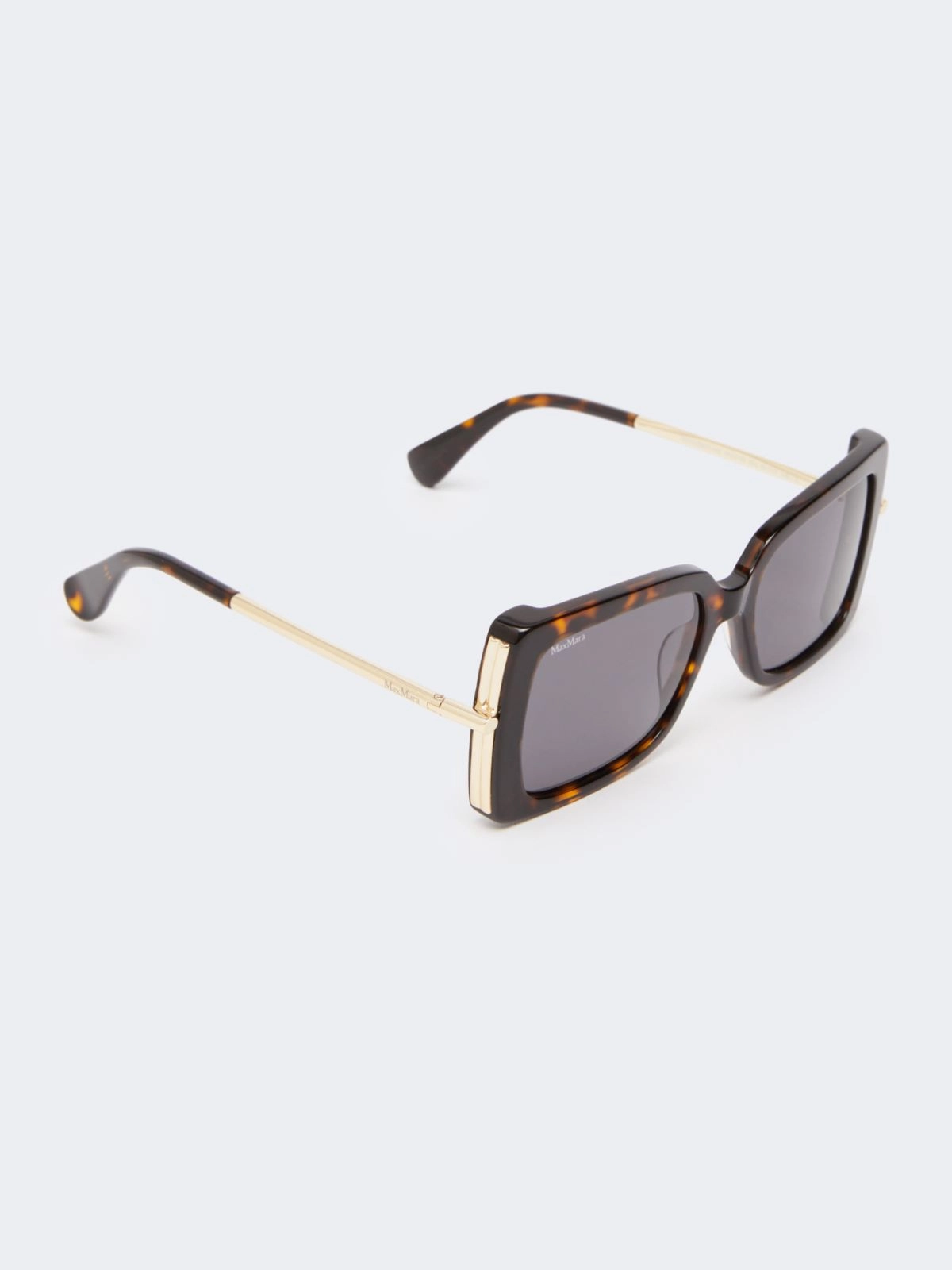 Sunglasses with a square acetate front, distinguished by a clean design and a metal insert on the side that connects the front to the temple, accentuating the purity of the lines.