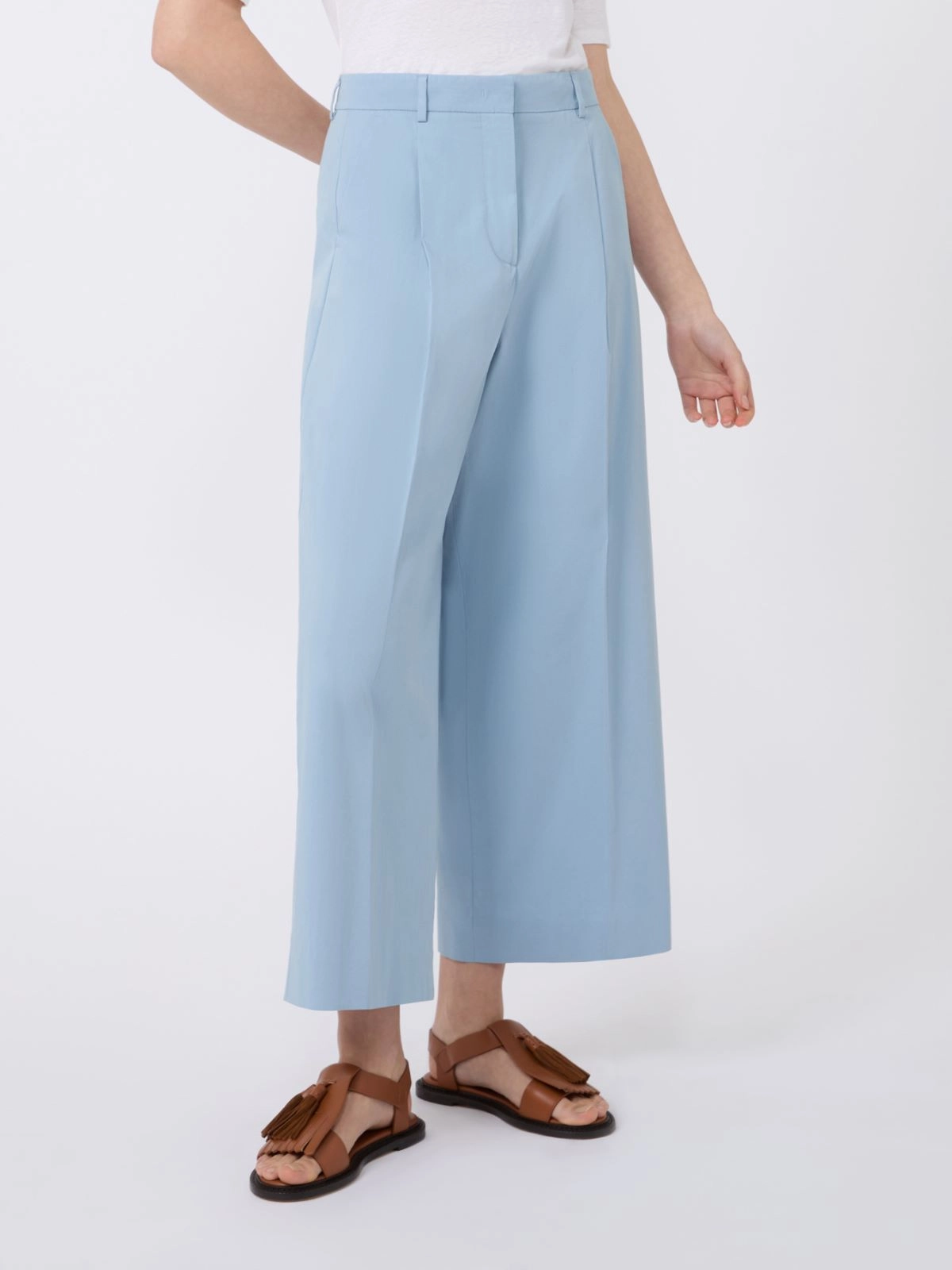 Wide-leg trousers with cropped cut to the ankle and pleats on the front waist.