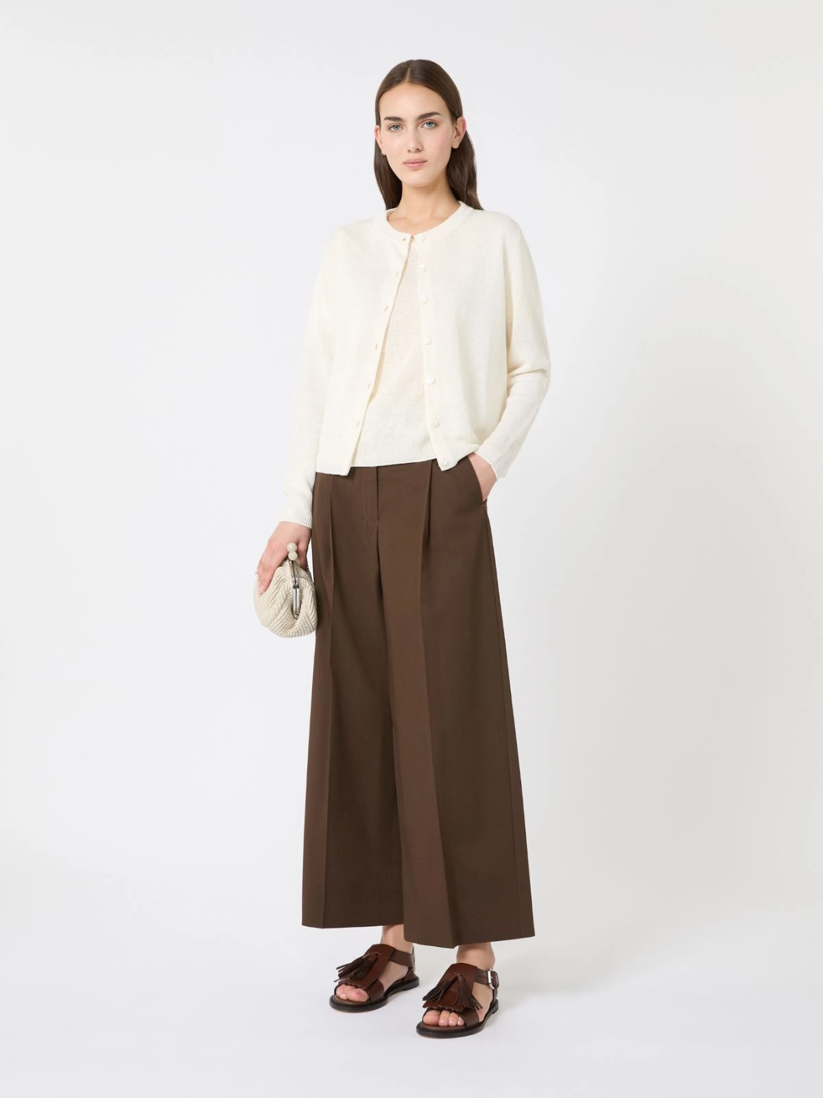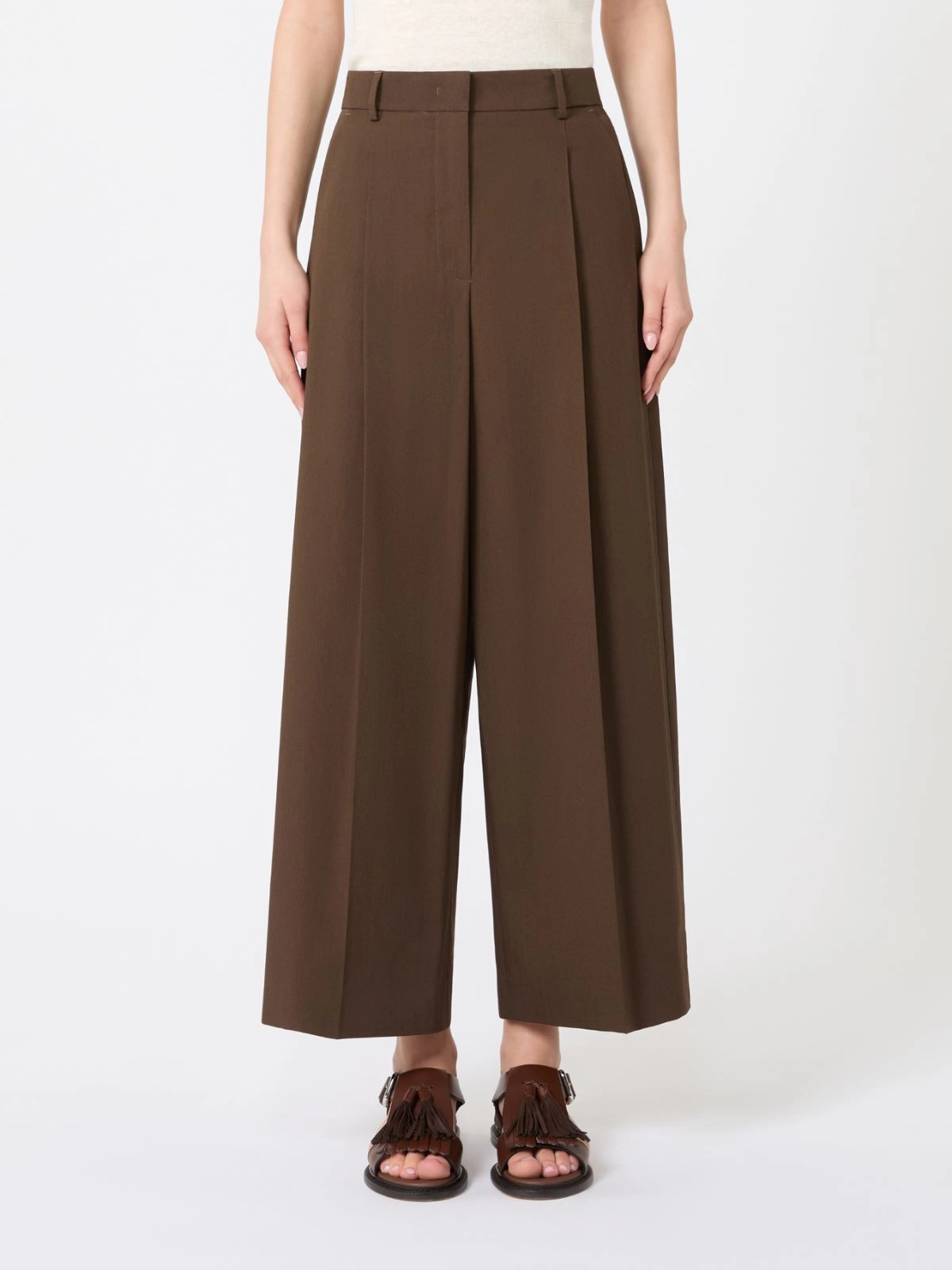 Wide-leg trousers with cropped cut to the ankle and pleats on the front waist.