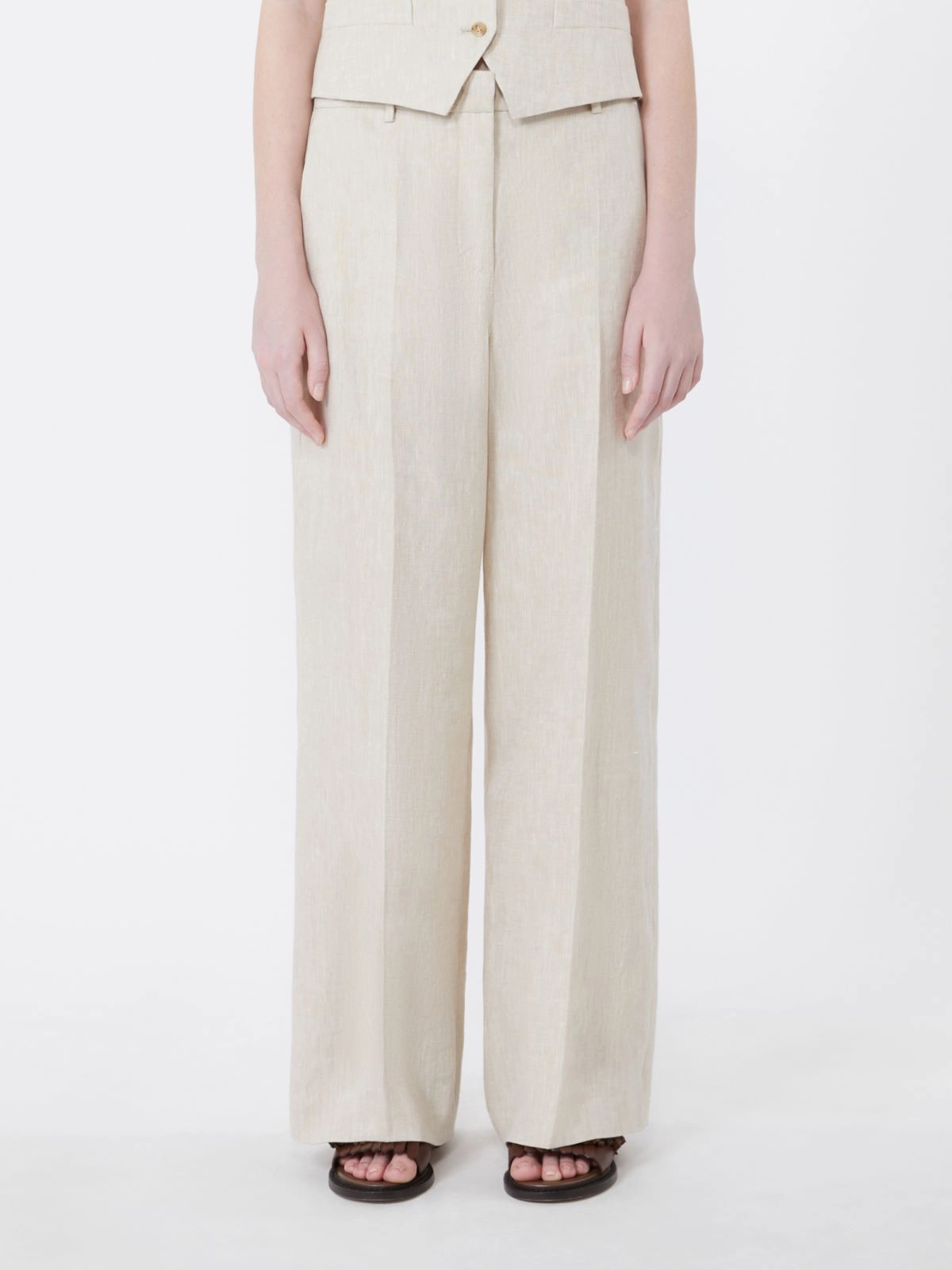 Wide-leg trousers with a straight leg and trouser crease that defines the volume.