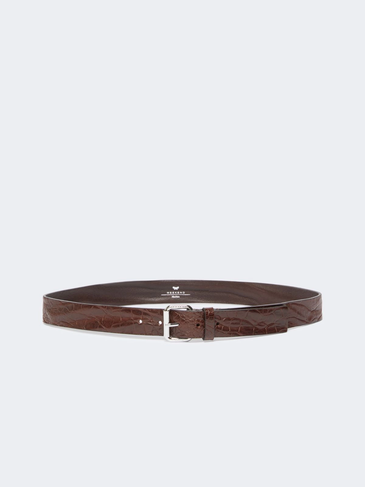 Croc print belt, closed with logoed pin buckle.