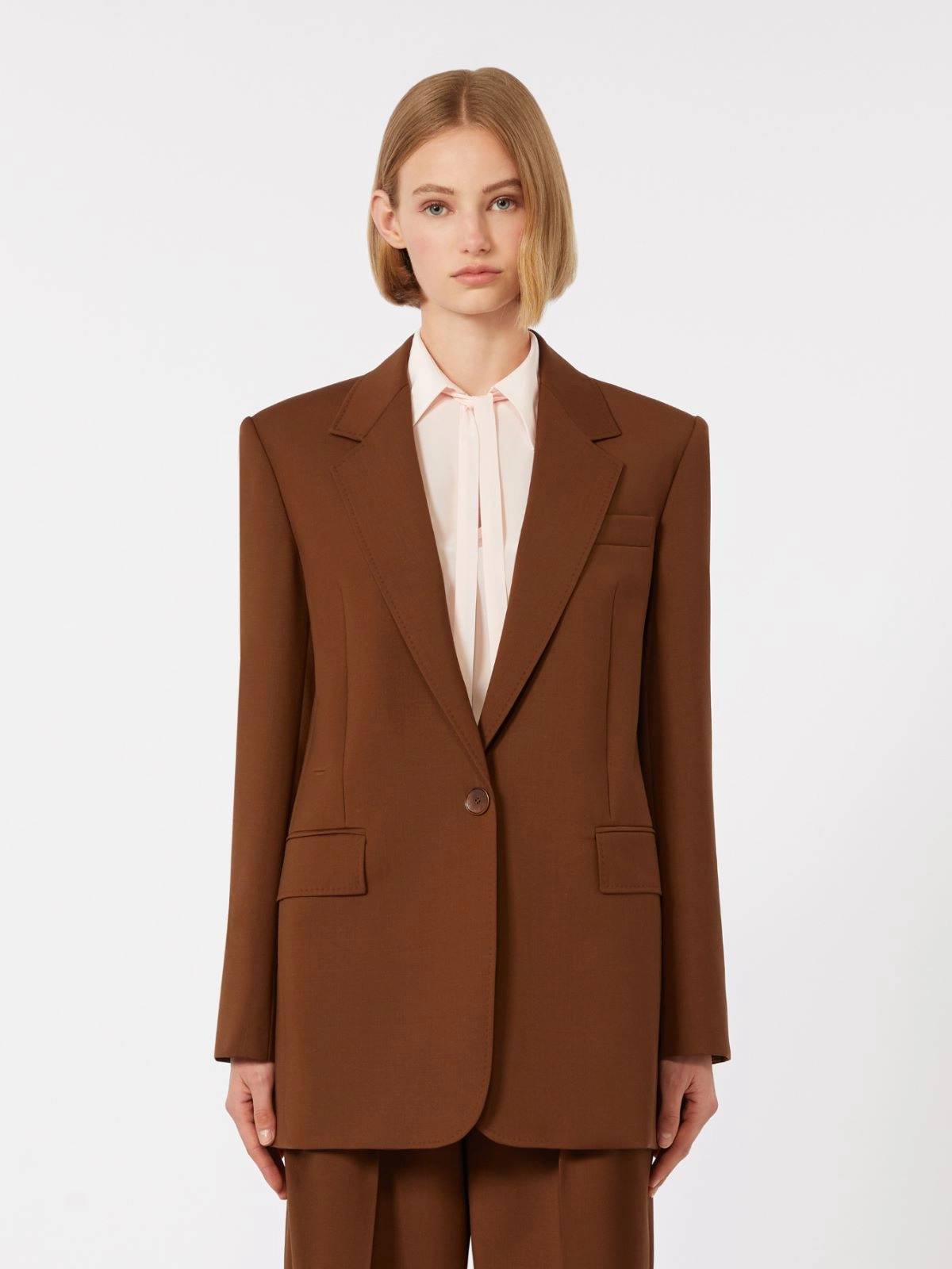 Single-breasted stretch wool blazer - Chocolate